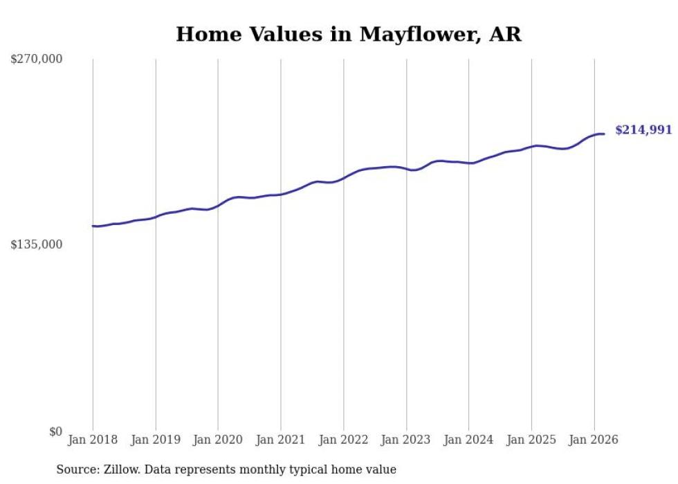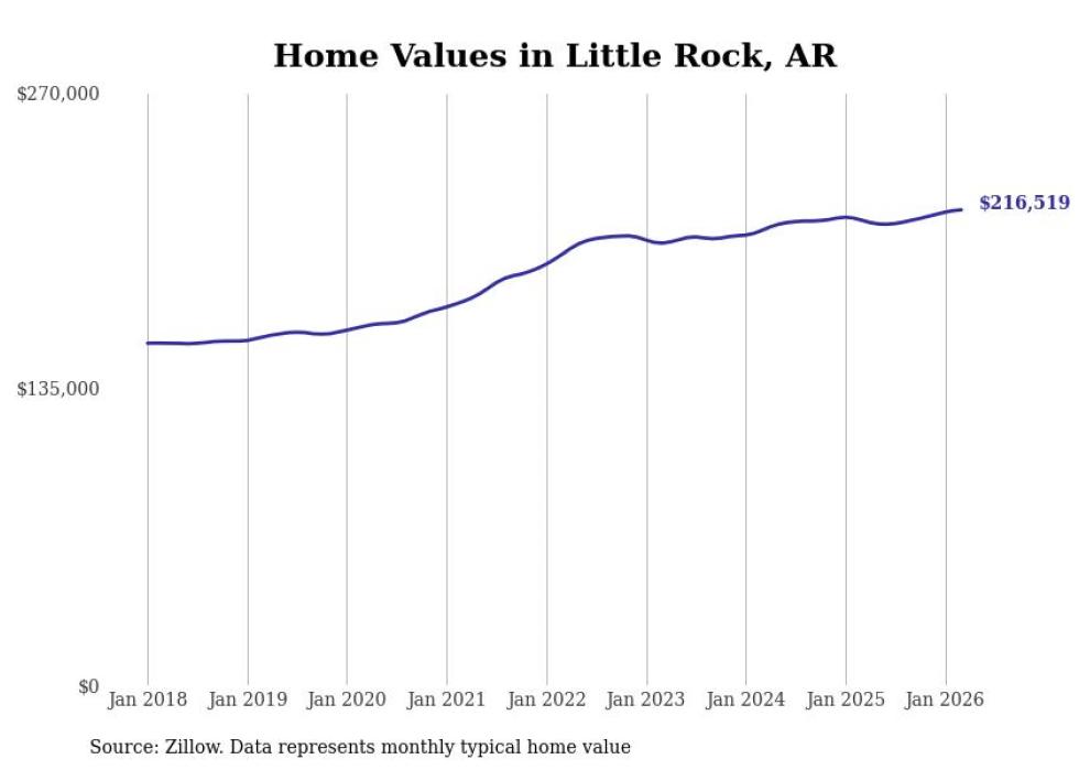 compiled a list of cities with the most expensive homes in the Little Rock metro area using data from . Charts show the monthly typical home value since January 2018. Data was available for 37 cities and towns.