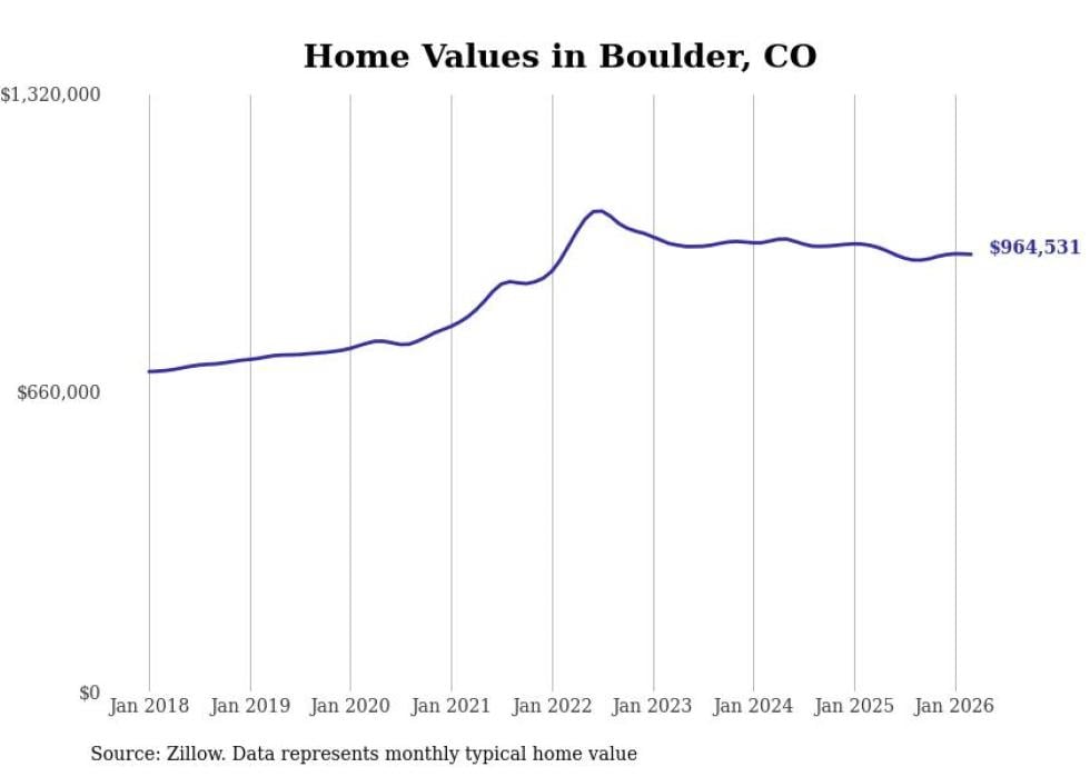 compiled a list of cities with the most expensive homes in the Boulder metro area using data from . Charts show the monthly typical home value since January 2018. All 12 cities and towns with data available were included in the list.
