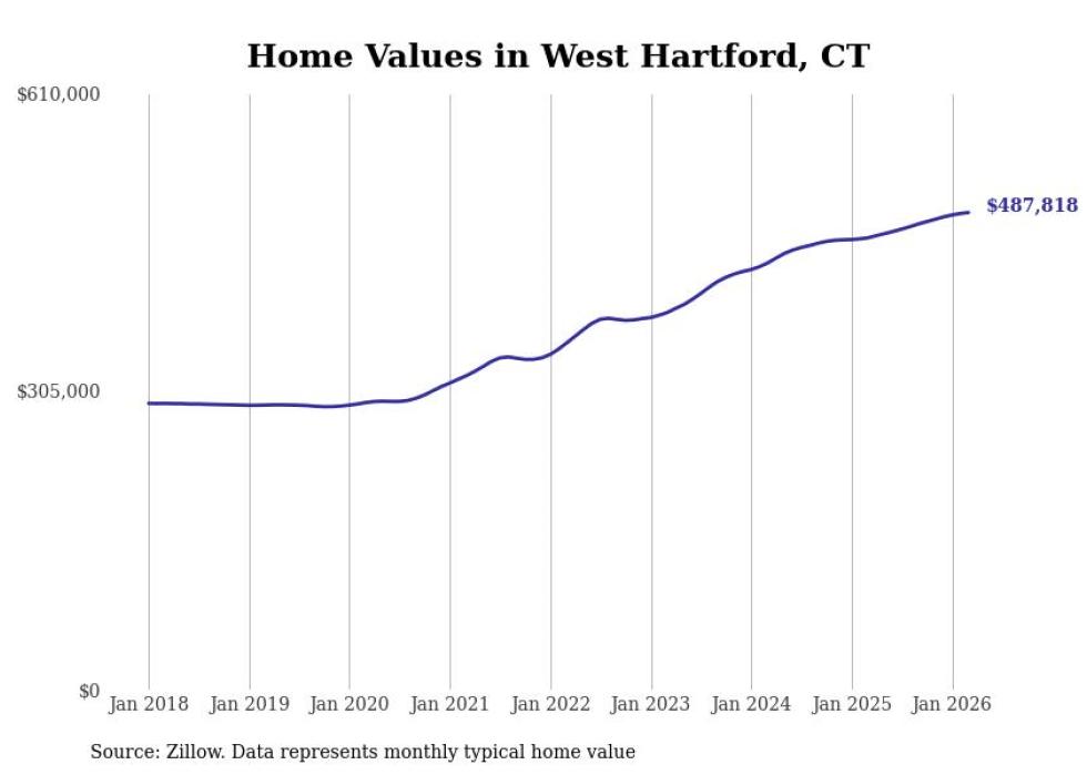 compiled a list of cities with the most expensive homes in the Hartford metro area using data from . Charts show the monthly typical home value since January 2018. Data was available for 59 cities and towns.