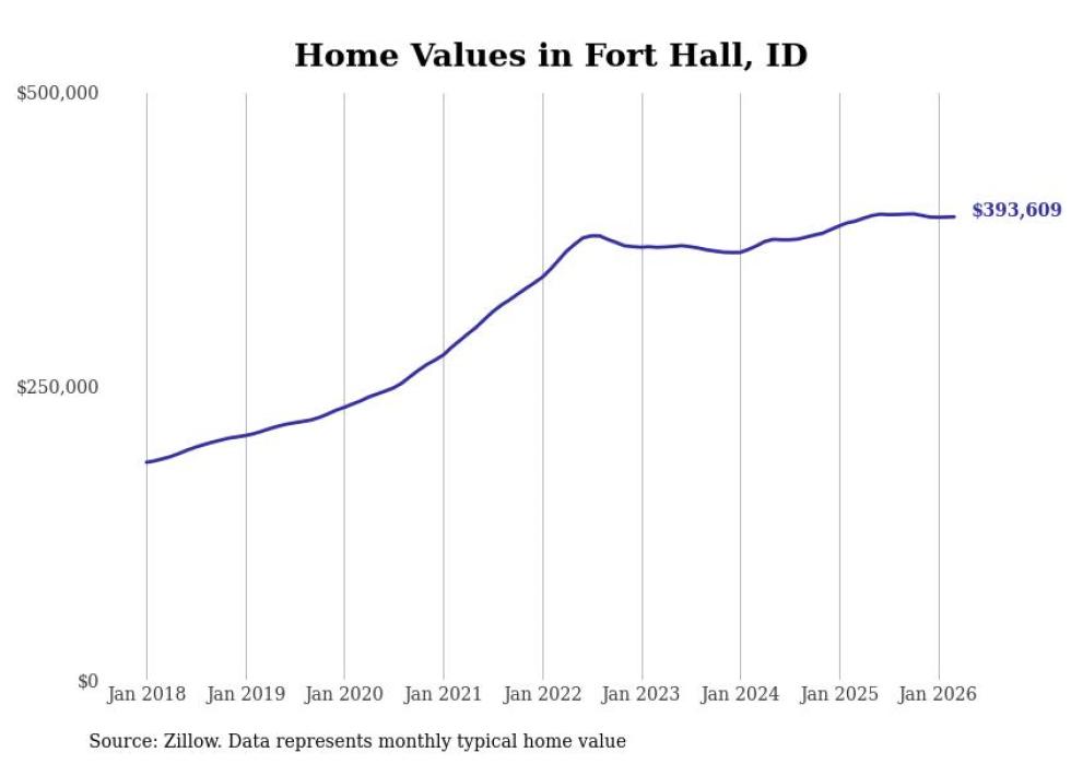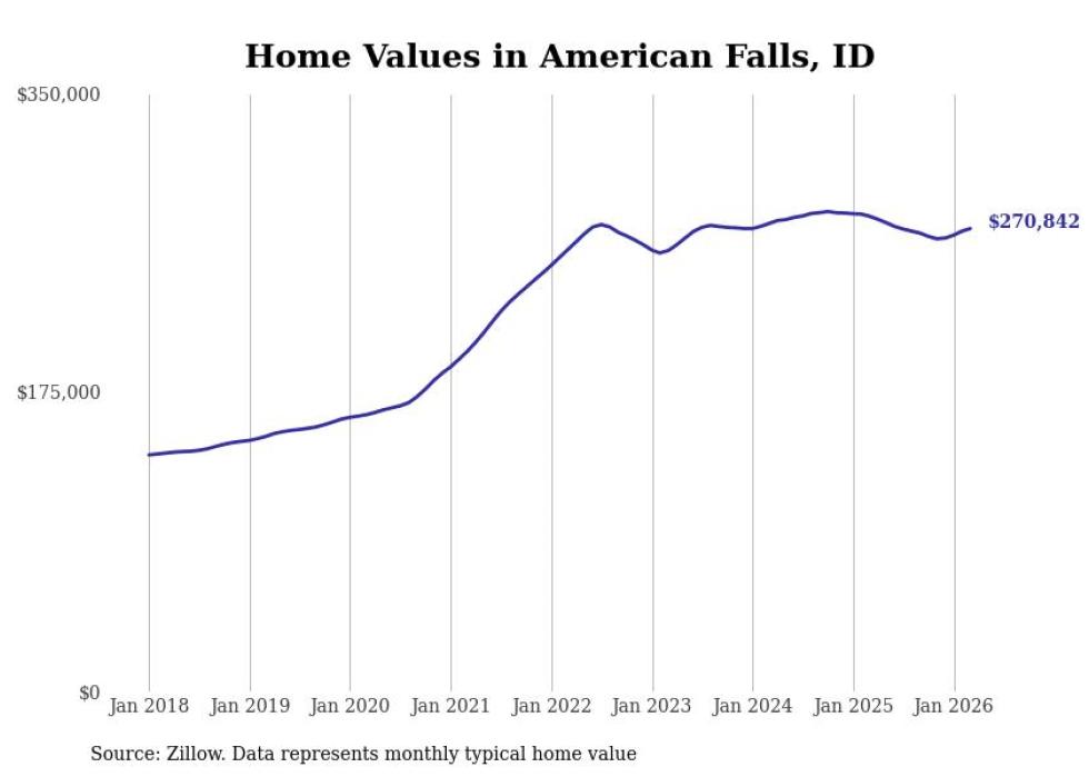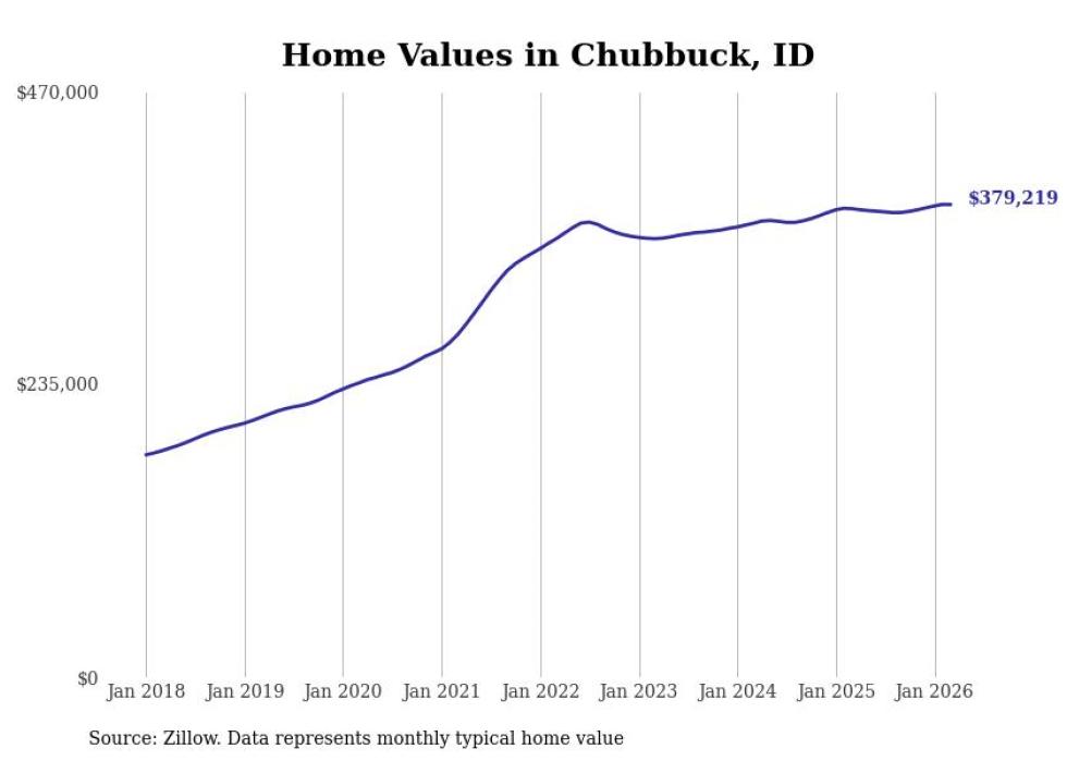 compiled a list of cities with the most expensive homes in the Pocatello, ID metro area using data from . Charts show the monthly typical home value since January 2018.