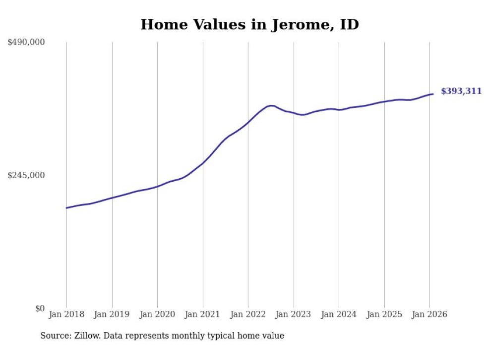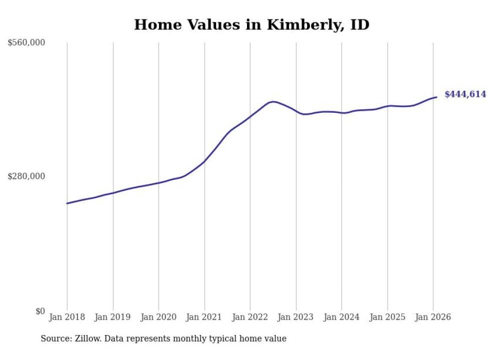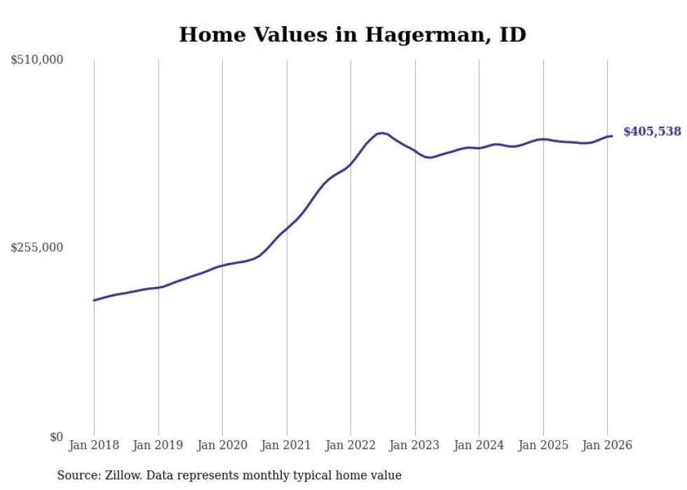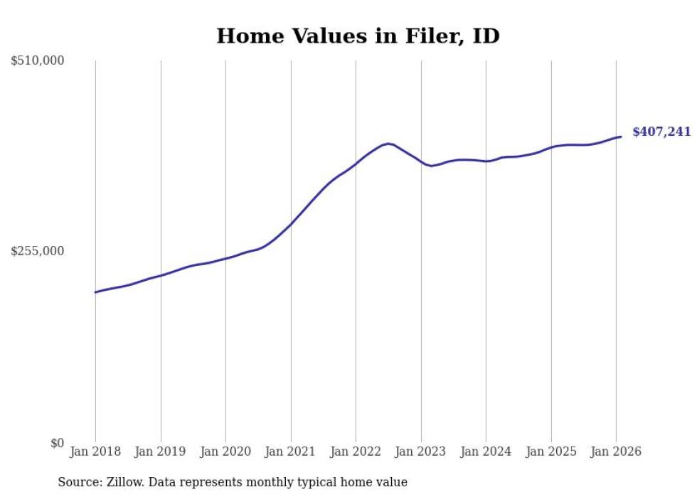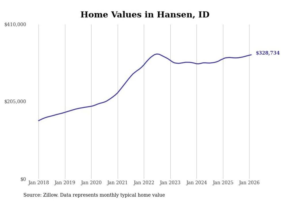 compiled a list of cities with the most expensive homes in the Twin Falls, ID metro area using data from . Charts show the monthly typical home value since January 2018.