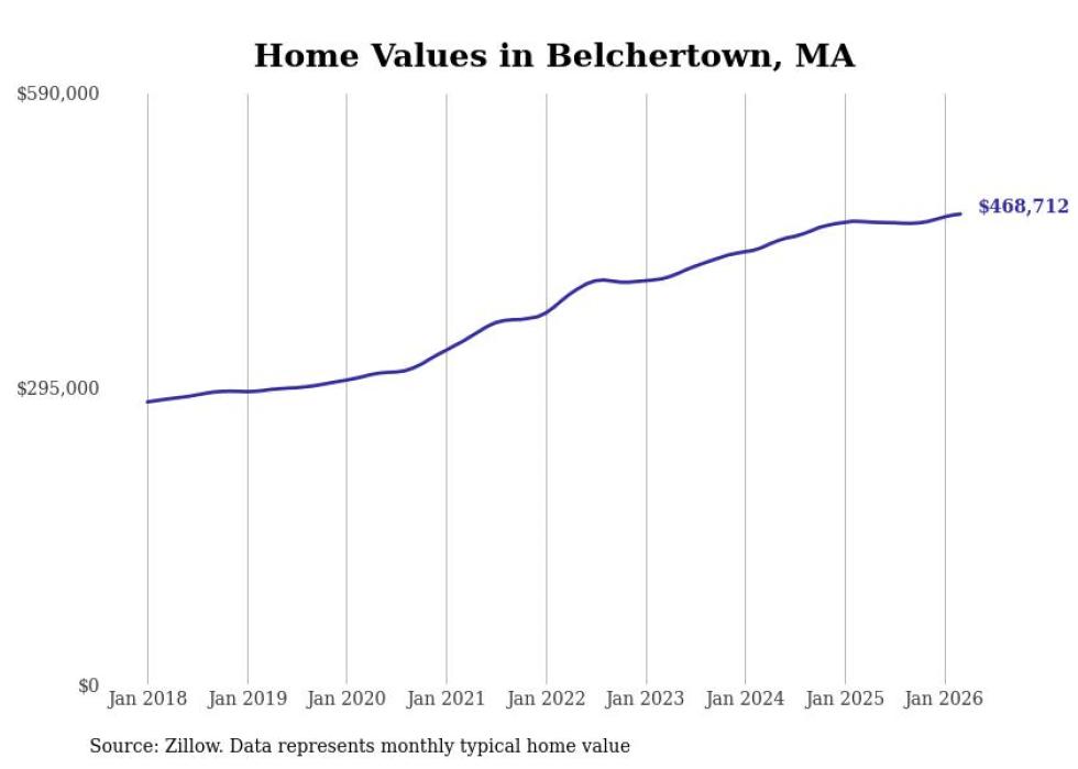 compiled a list of cities with the most expensive homes in the Springfield, Massachusetts metro area using data from . Charts show the monthly typical home value since January 2018. Data was available for 71 cities and towns.