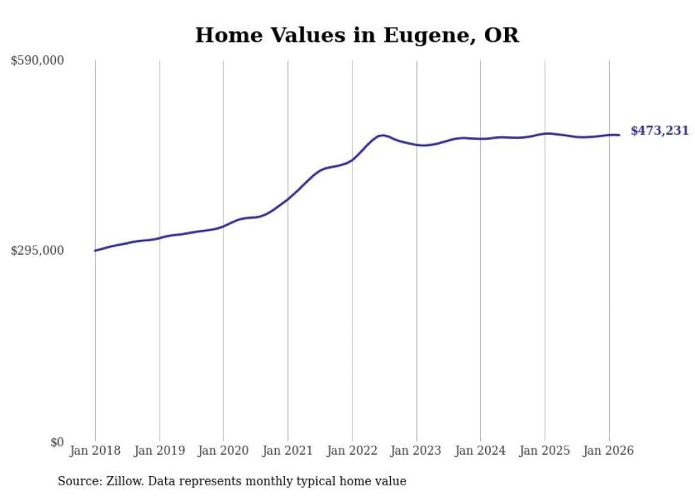 compiled a list of cities with the most expensive homes in the Eugene metro area using data from . Charts show the monthly typical home value since January 2018. All 25 cities and towns with data available were included in the list.