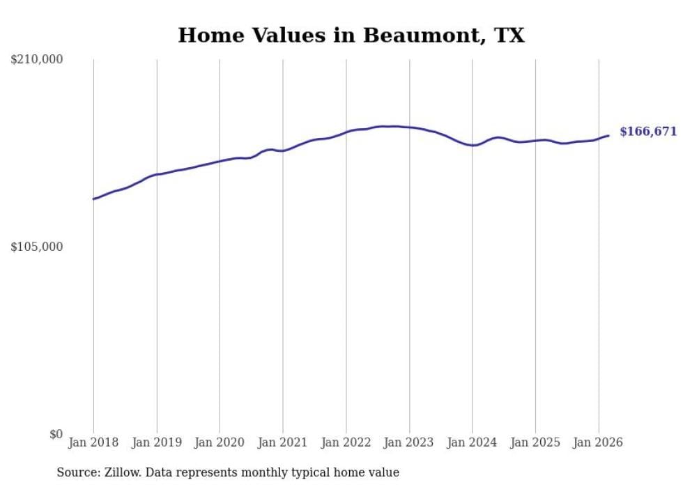 compiled a list of cities with the most expensive homes in the Beaumont metro area using data from . Charts show the monthly typical home value since January 2018. All 22 cities and towns with data available were included in the list.