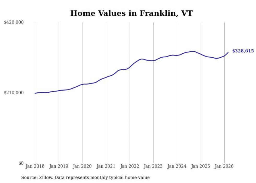 compiled a list of cities with the most expensive homes in the Burlington-South Burlington, VT metro area using data from . Charts show the monthly typical home value since January 2018.
