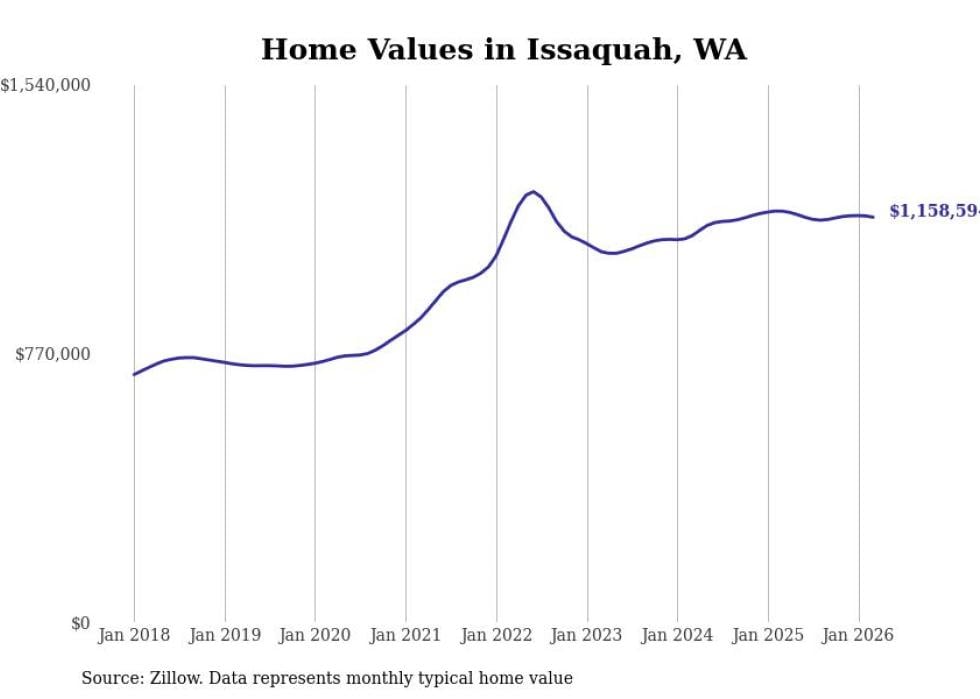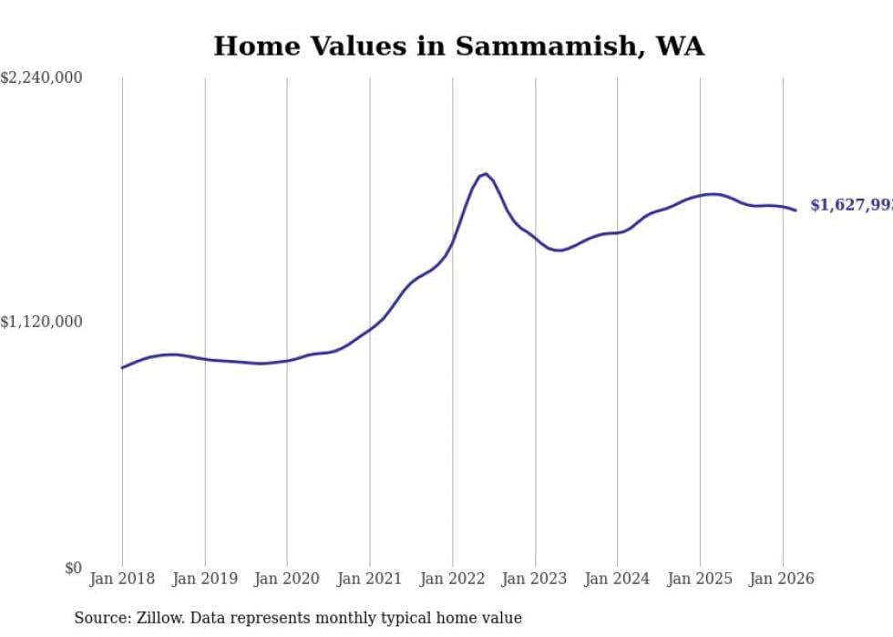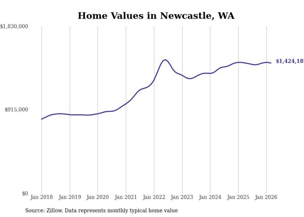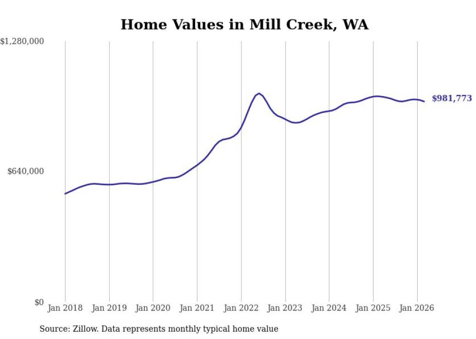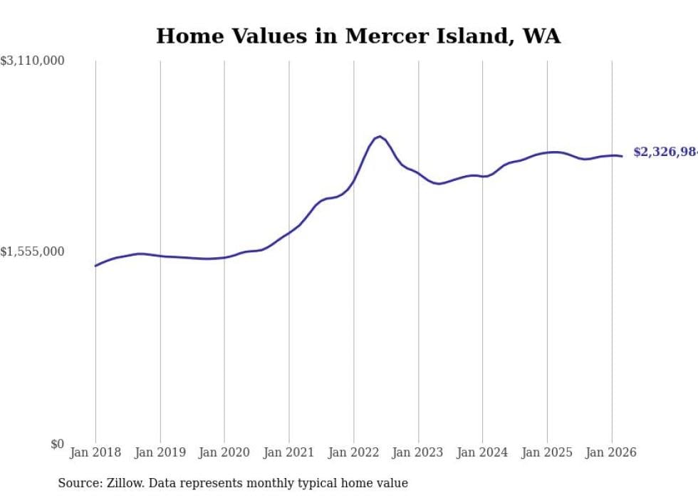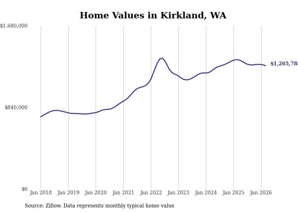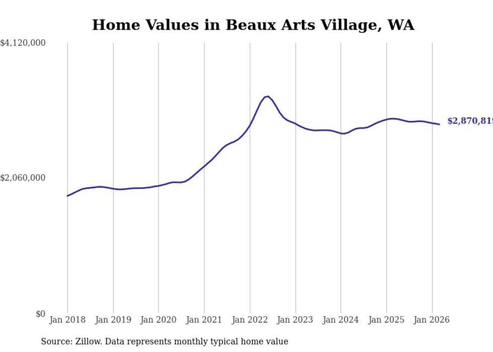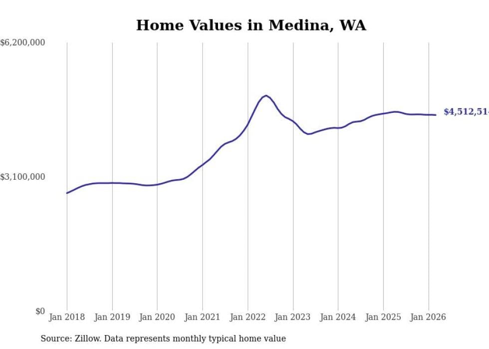 compiled a list of cities with the most expensive homes in the Seattle metro area using data from . Charts show the monthly typical home value since January 2018. Data was available for 96 cities and towns.