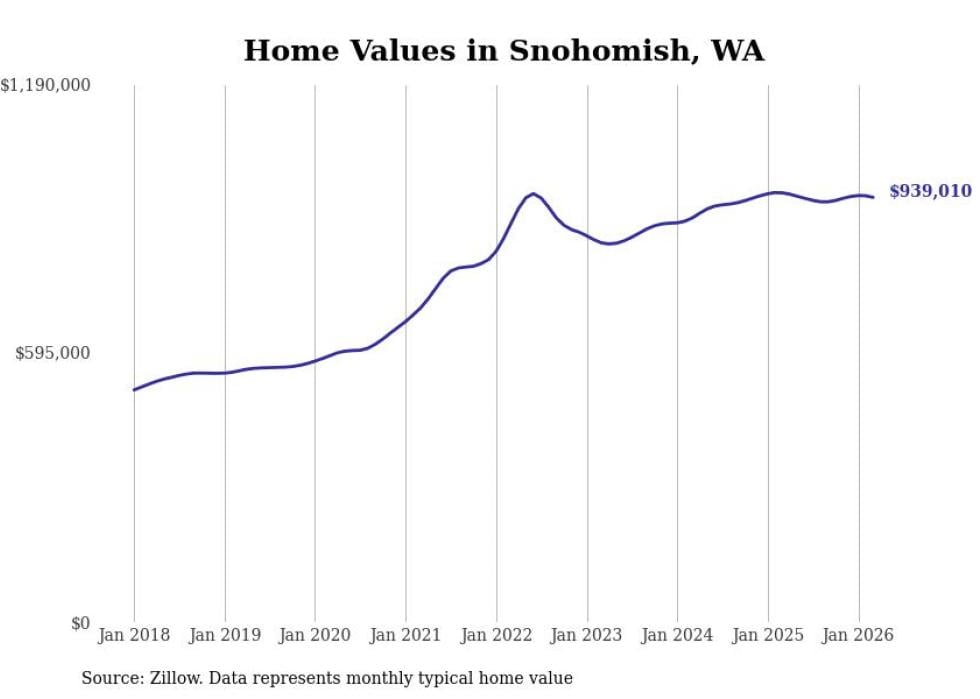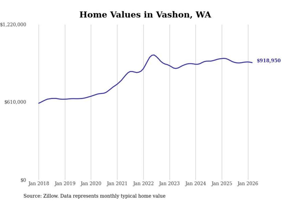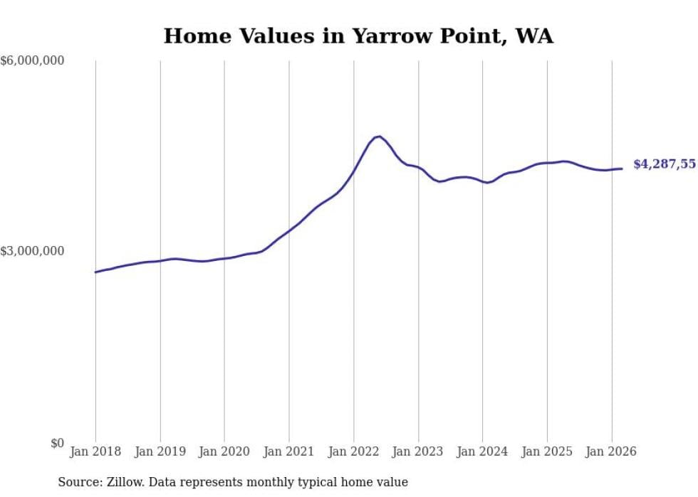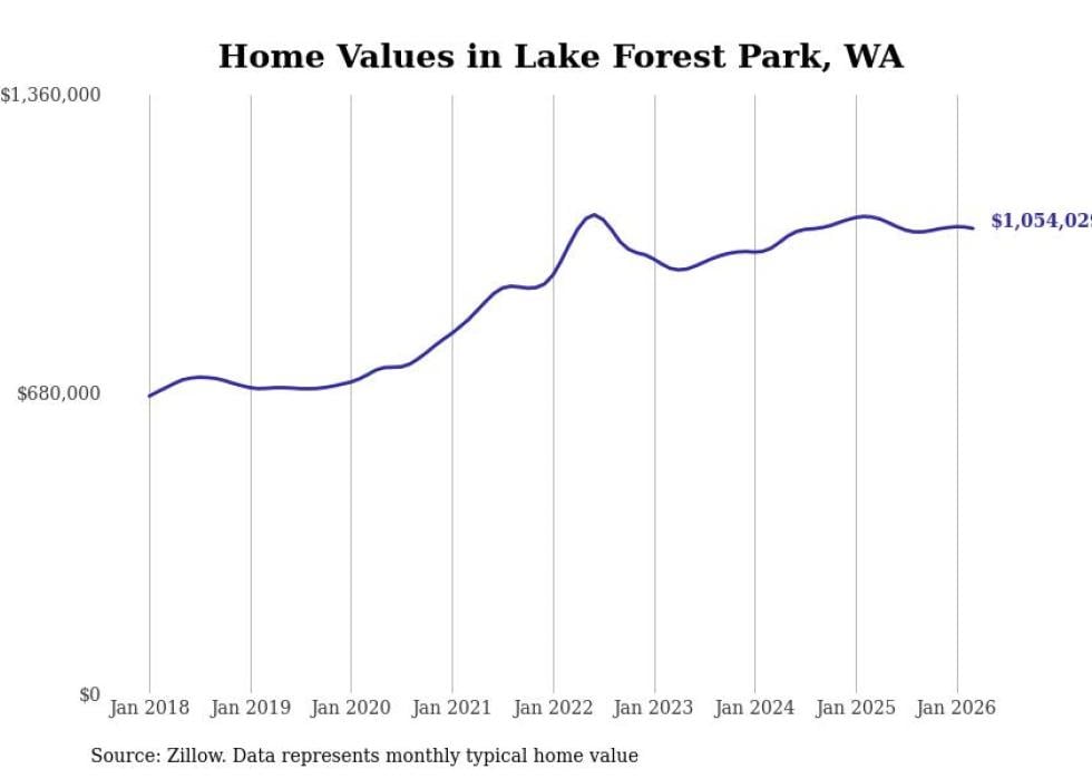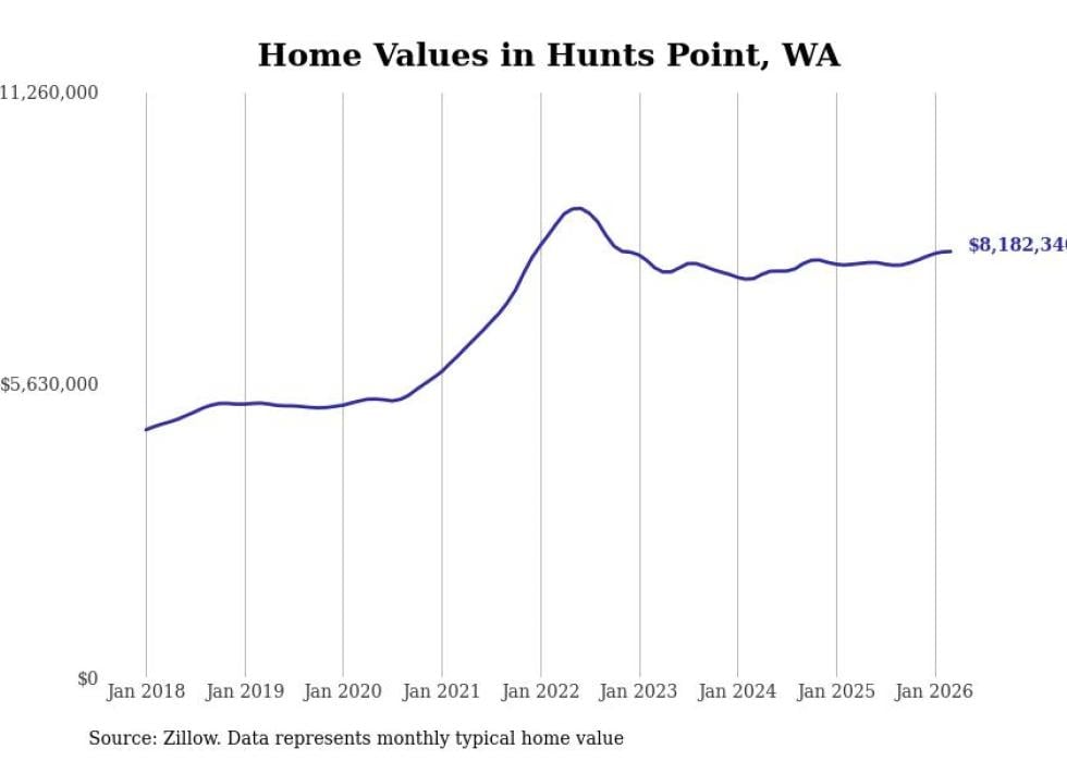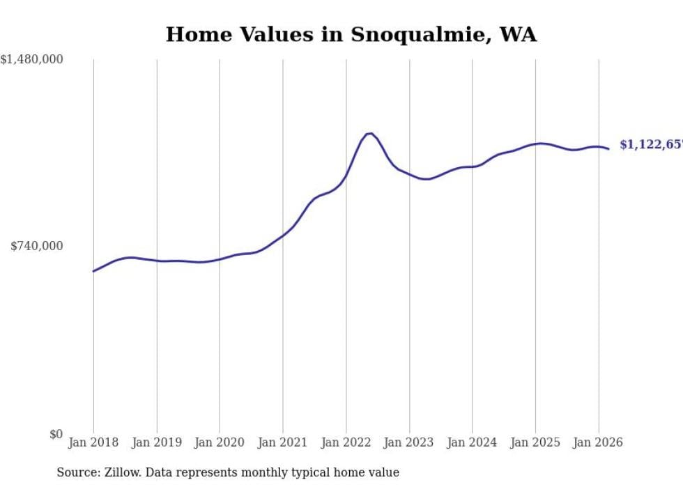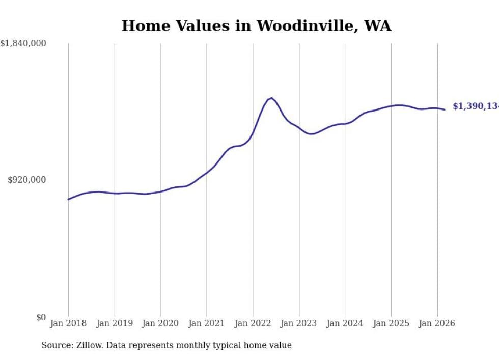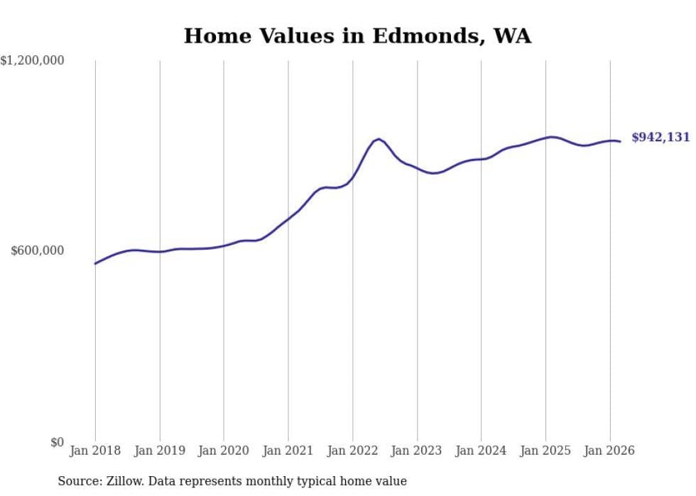 compiled a list of cities with the most expensive homes in the Seattle metro area using data from . Charts show the monthly typical home value since January 2018. Data was available for 96 cities and towns.